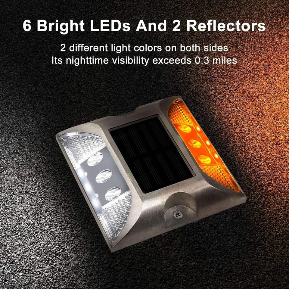 Voyant d'avertissement de trafic à Led blanche haute visibilité Ip68 étanche goujons de route solaires en aluminium sécurité routière réflecteur hautement réfléchissant