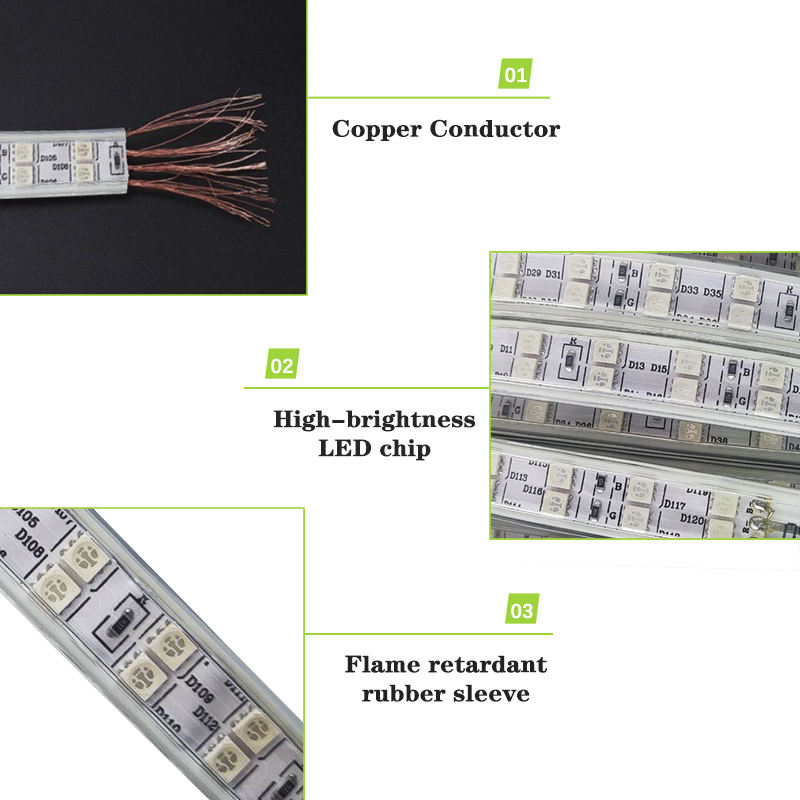 Bande lumineuse RGB LED haute tension 5050 SMD 120led 220V 10M 20M 30M 40M 50M ruban LED Flexible