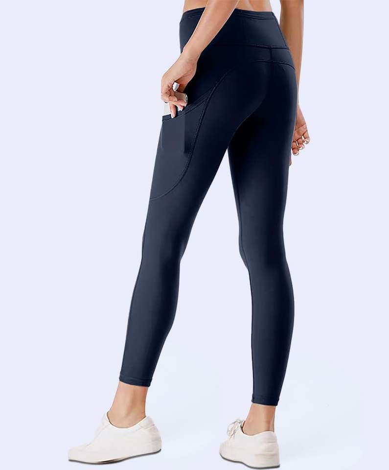 Legging de sport taille haute pour femme, effet gainant, avec poches intérieures, contrôle du ventre, brillant, style disco, pour yoga et sport