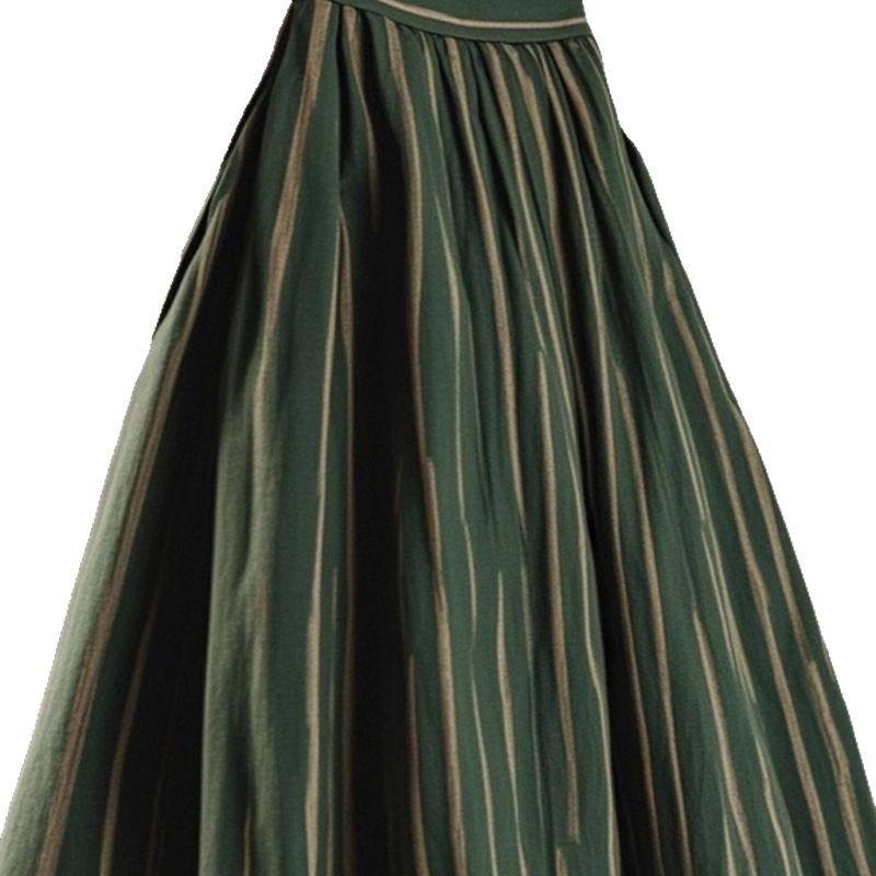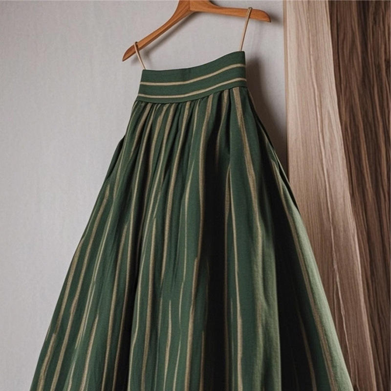 Jupe midi taille haute verte unie en polyester/coton à séchage rapide pour femme, design évasé avec empiècements, idéale pour la silhouette en forme de poire, collection automne