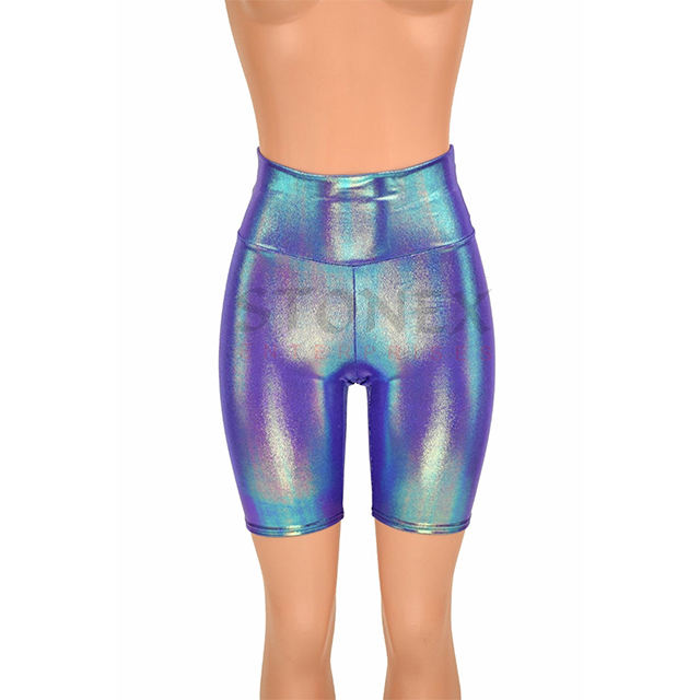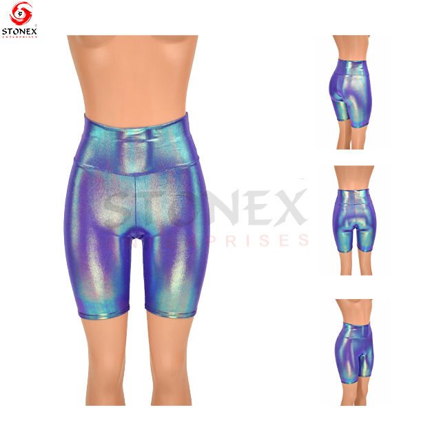 Short de vélo métallique taille haute Moonstone Short extensible brillant serré sur mesure pour les femmes