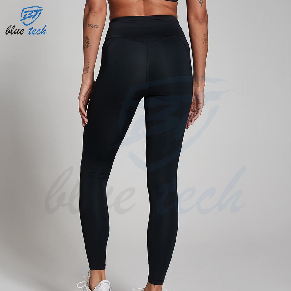 Legging de yoga taille haute à motif solide Pantalon de fitness à séchage rapide Ventre brossé Nylon Spandex Effet de levage des fesses Moulant
