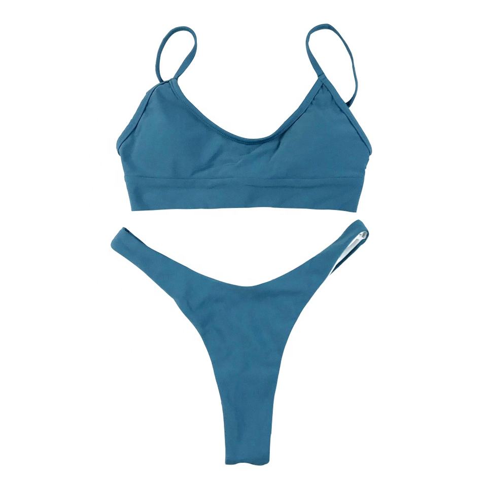 Ensemble de bikini string taille haute pour femmes, vêtements de plage pour adolescentes, couleur unie, maillot de bain deux pièces