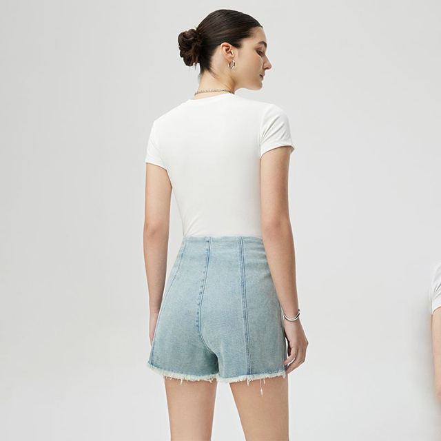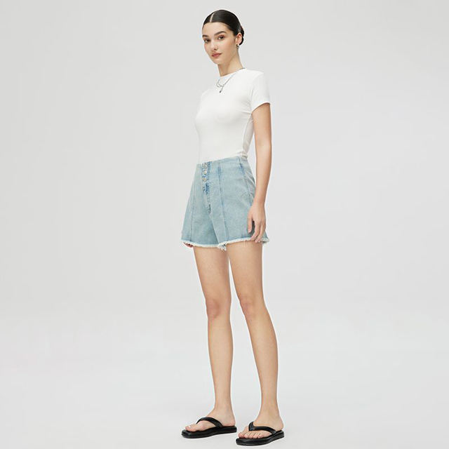 Short en jean taille haute à trois boutons pour femme, nouvelle collection Printemps-Été 2026, coupe trapèze élastique amincissante, jambe large, jean d'été pour femme
