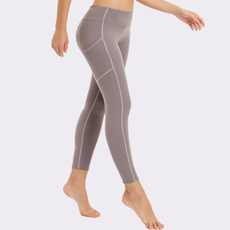 Taille haute entraînement avant sans couture serré contrôle du ventre doux pas de pantalon de Yoga transparent athlétique course Yoga Leggings femmes