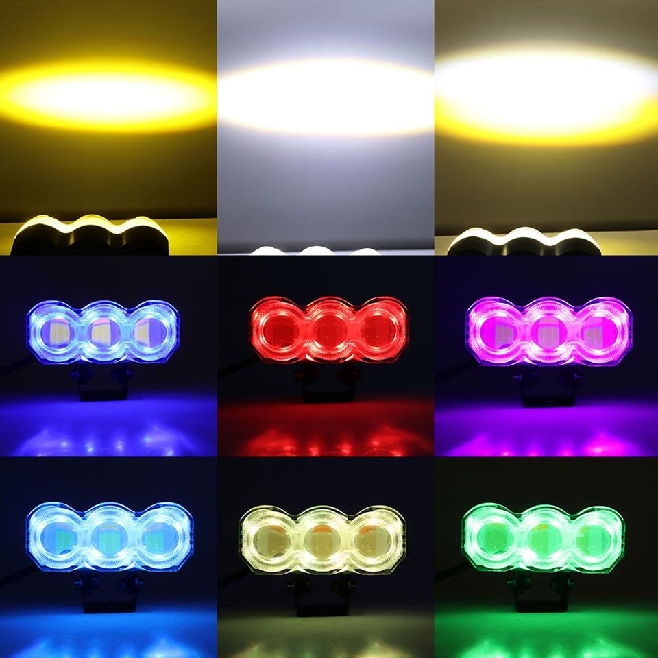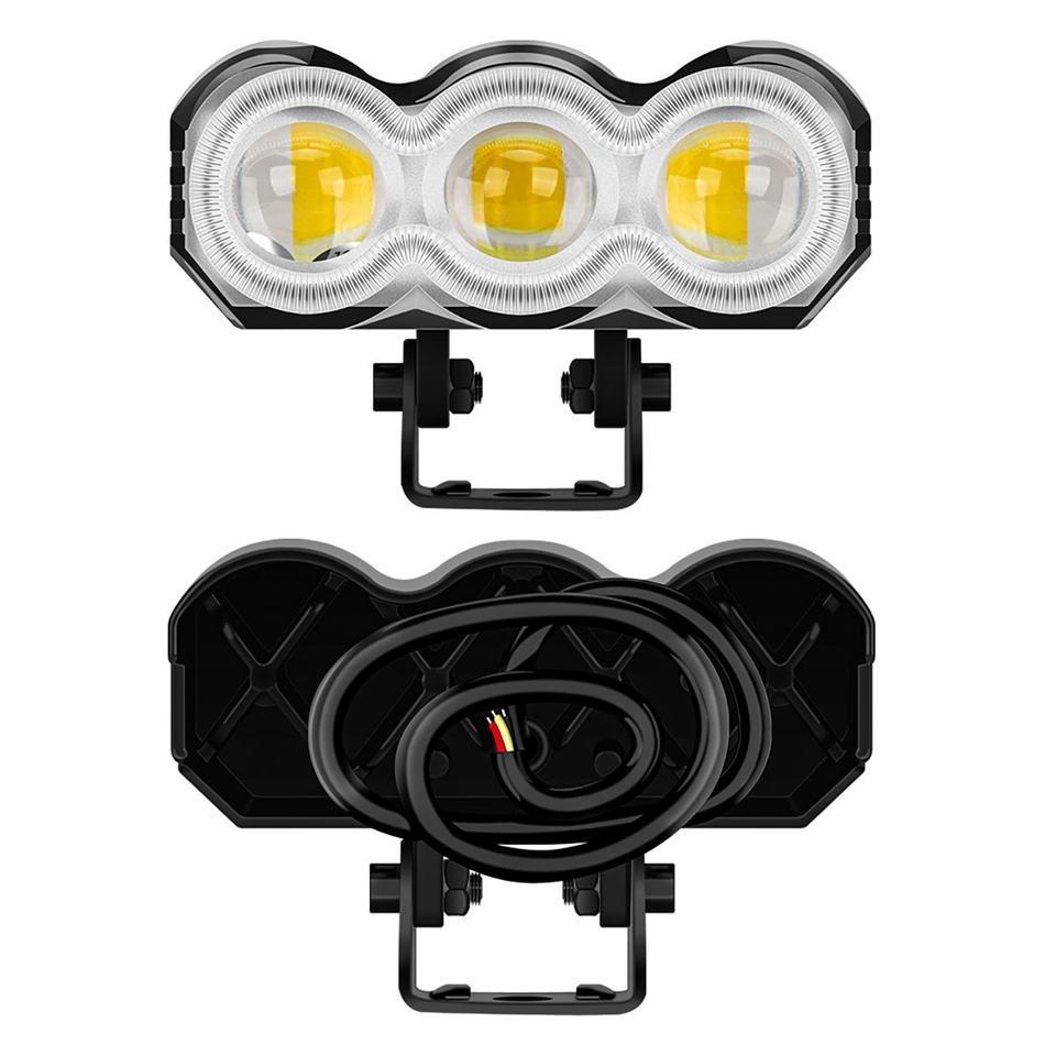 Projecteur LED externe haute luminosité pour moto, 3 lentilles, blanc, jaune, clignotant, anneaux lumineux multicolores, moto électrique