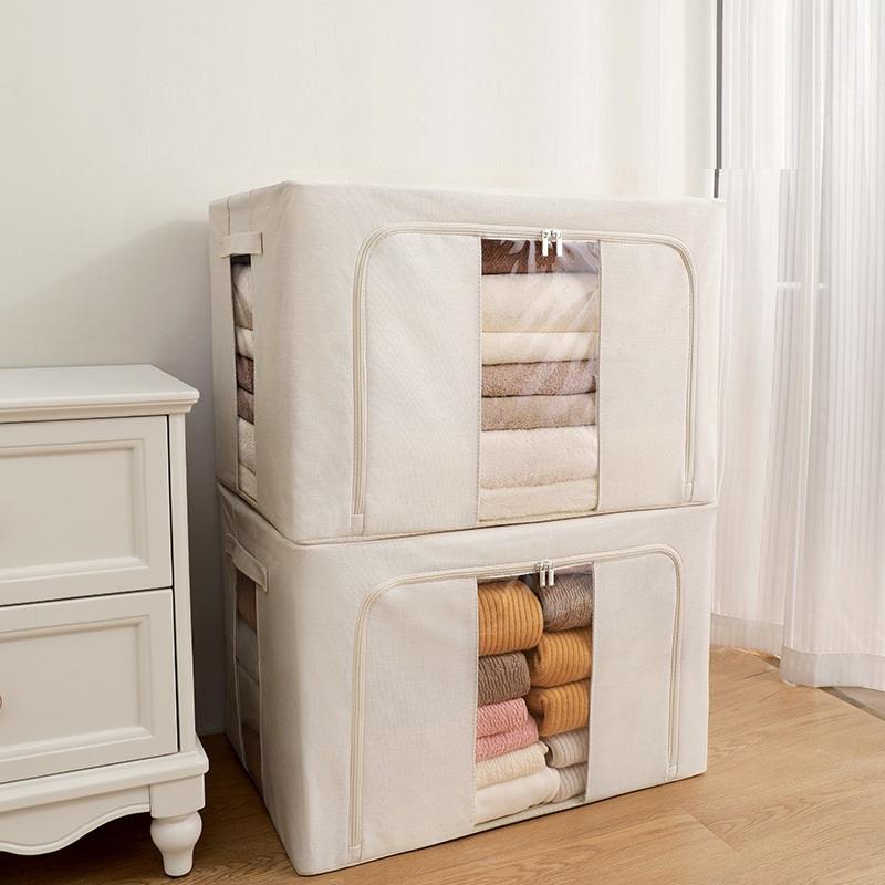 Garde-robe haute capacité organiser fenêtre visuelle boîte de rangement de vêtements bacs de rangement de vêtements avec cadre en métal