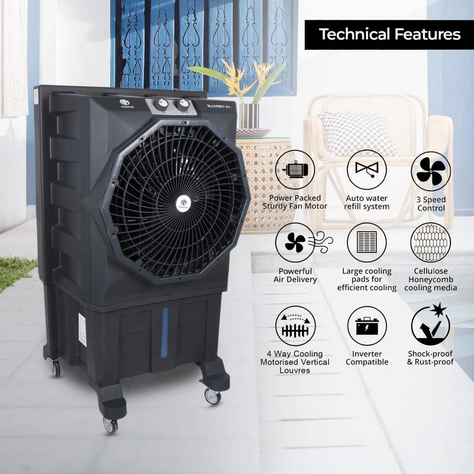 Refroidisseur d'air haute capacité Rambo Junior 75 LTR Refroidisseur d'air portable avec moteur écoénergétique et réglages de ventilateur multi-vitesses