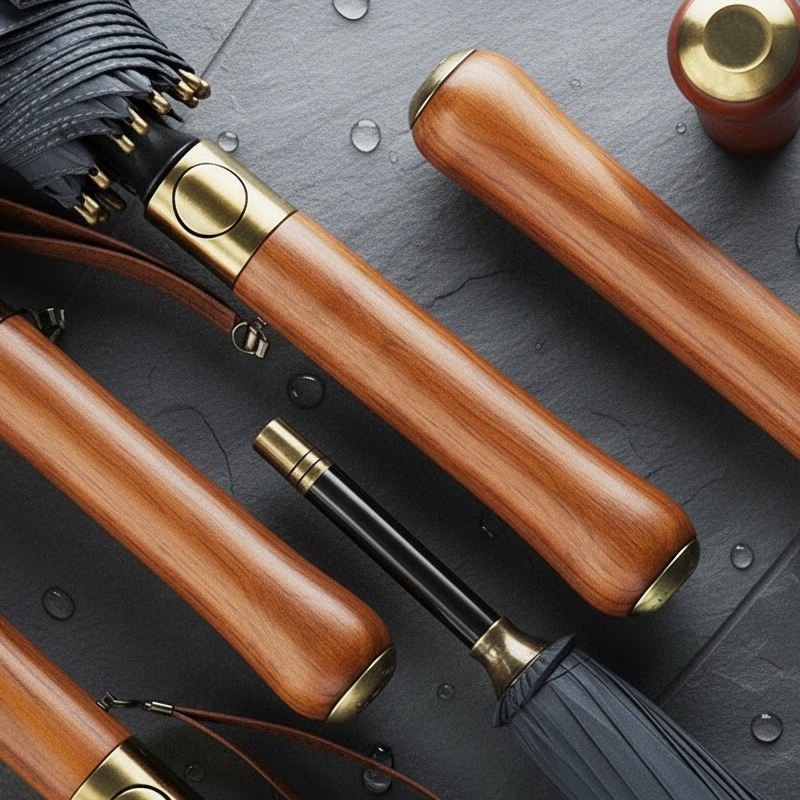 Parapluie de golf droit haut de gamme de 25 pouces, 16K, résistant au vent, manche en bois, ouverture automatique, cadre en fibre de verre, 16 baleines, parapluie d'affaires
