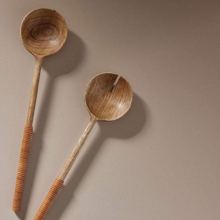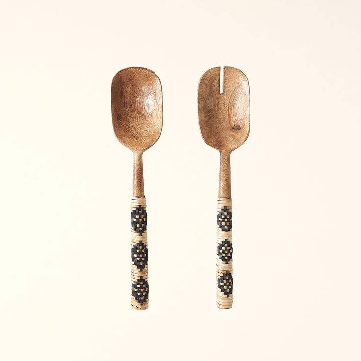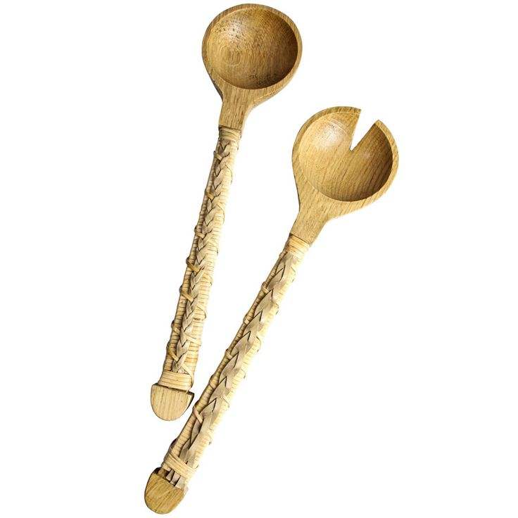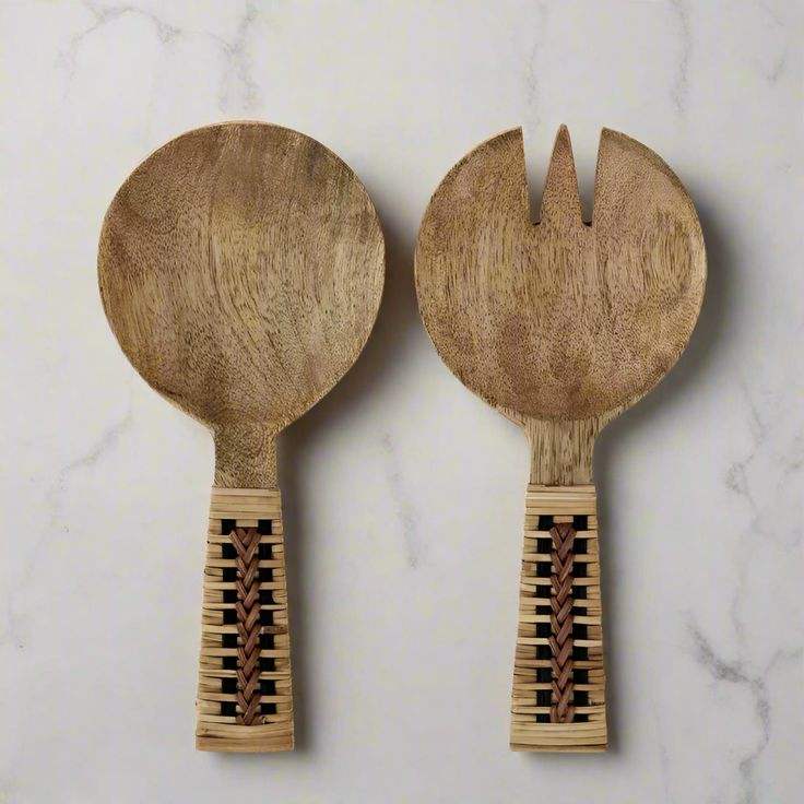 Serveur à salade en bois et rotin