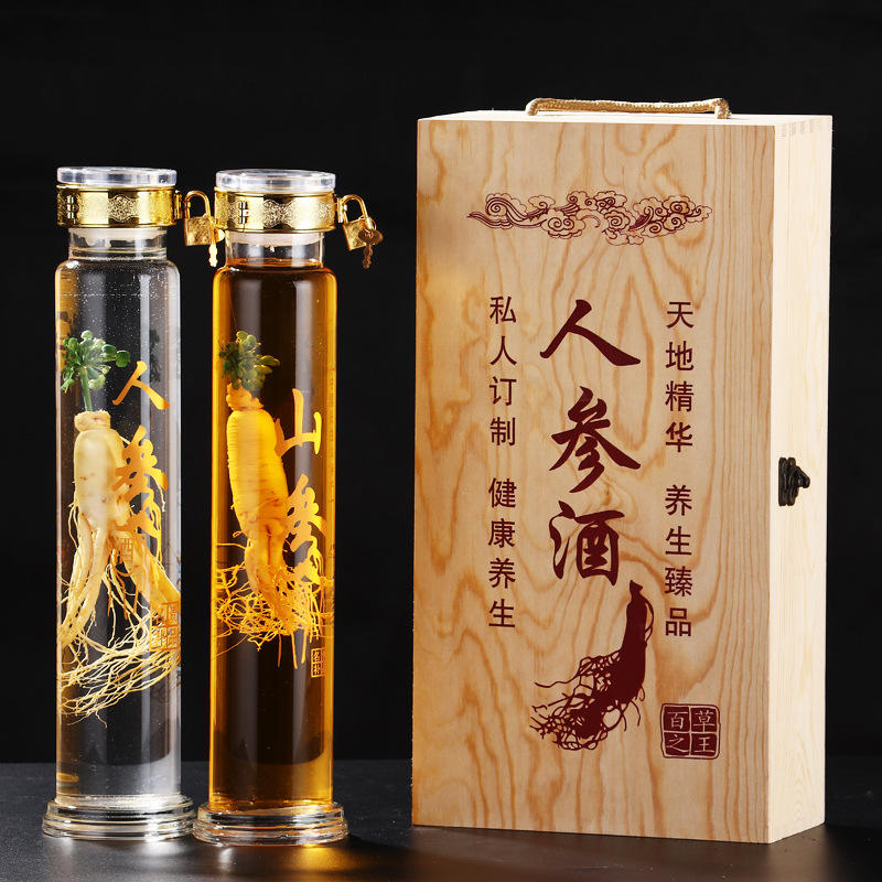 Bouteille de vin à bulles de ginseng haut de gamme de 500 ml, 1 L, 1,5 L, 2 L, 2,5 L, 3 L avec boîte cadeau en bois de luxe ou boîte en mousse