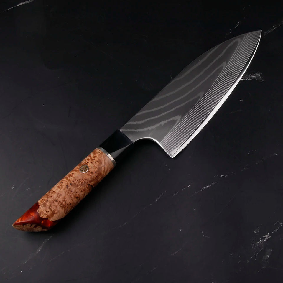 Couteau de chef japonais haut de gamme en acier Damas VG10 avec manche en résine de 6,5 pouces, couteau Deba, couteau de cuisine, Gyuto