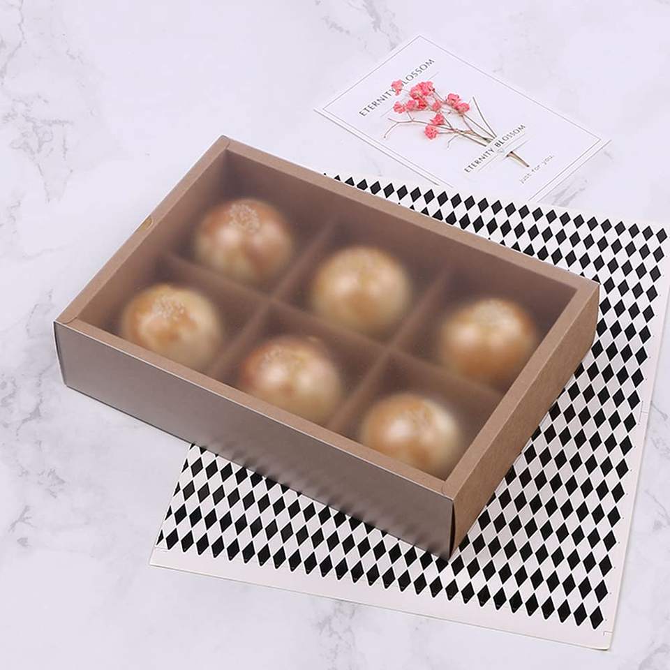 Boîtes à beignets en papier de boulangerie haut de gamme avec fenêtre transparente et séparateur en carton pour emballage de biscuits/biscuits de Noël