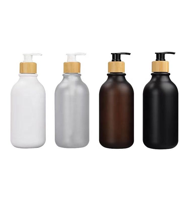 Quantité minimale de commande basse bouteille de Lotion pour le corps, nouvelle pompe en bois 300ml/500ml givré