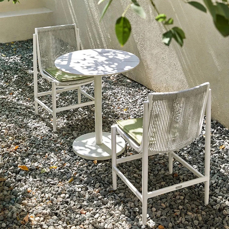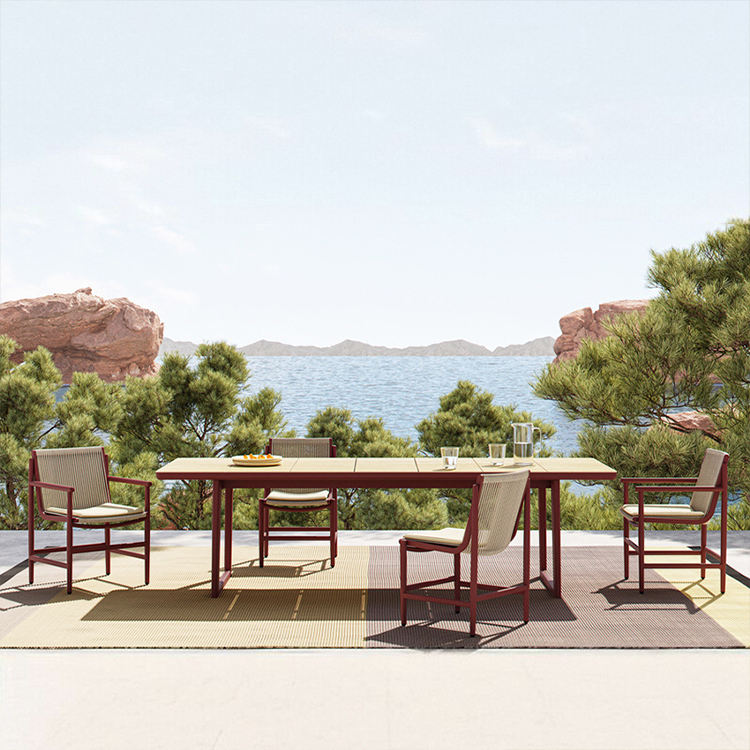 Ensemble de mobilier de jardin haut de gamme sur mesure pour hôtel, style champêtre, table et chaises de cour, résistant à l'eau et aux rayons UV, fabrication en usine
