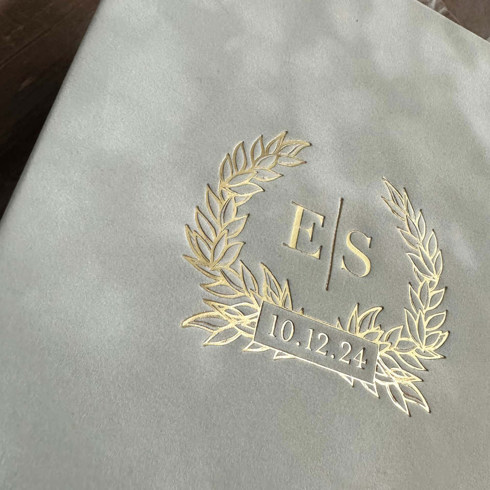 Invitations de mariage de luxe élégantes en cuir, lin et velours personnalisables haut de gamme