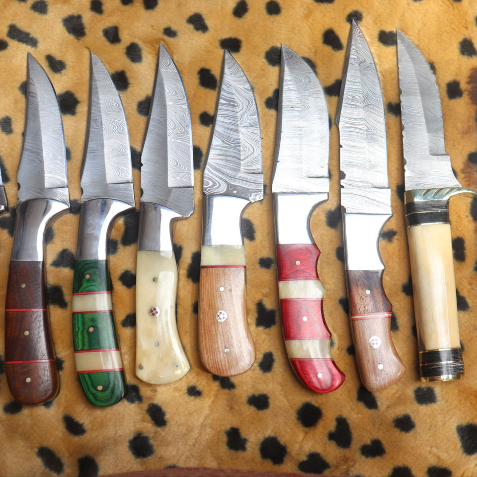 Couteau de poche de chasse en acier Damas haut de gamme avec manche en bois Couteau de chasse en acier Damas forgé à la main personnalisé