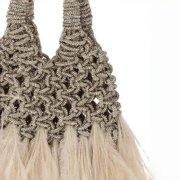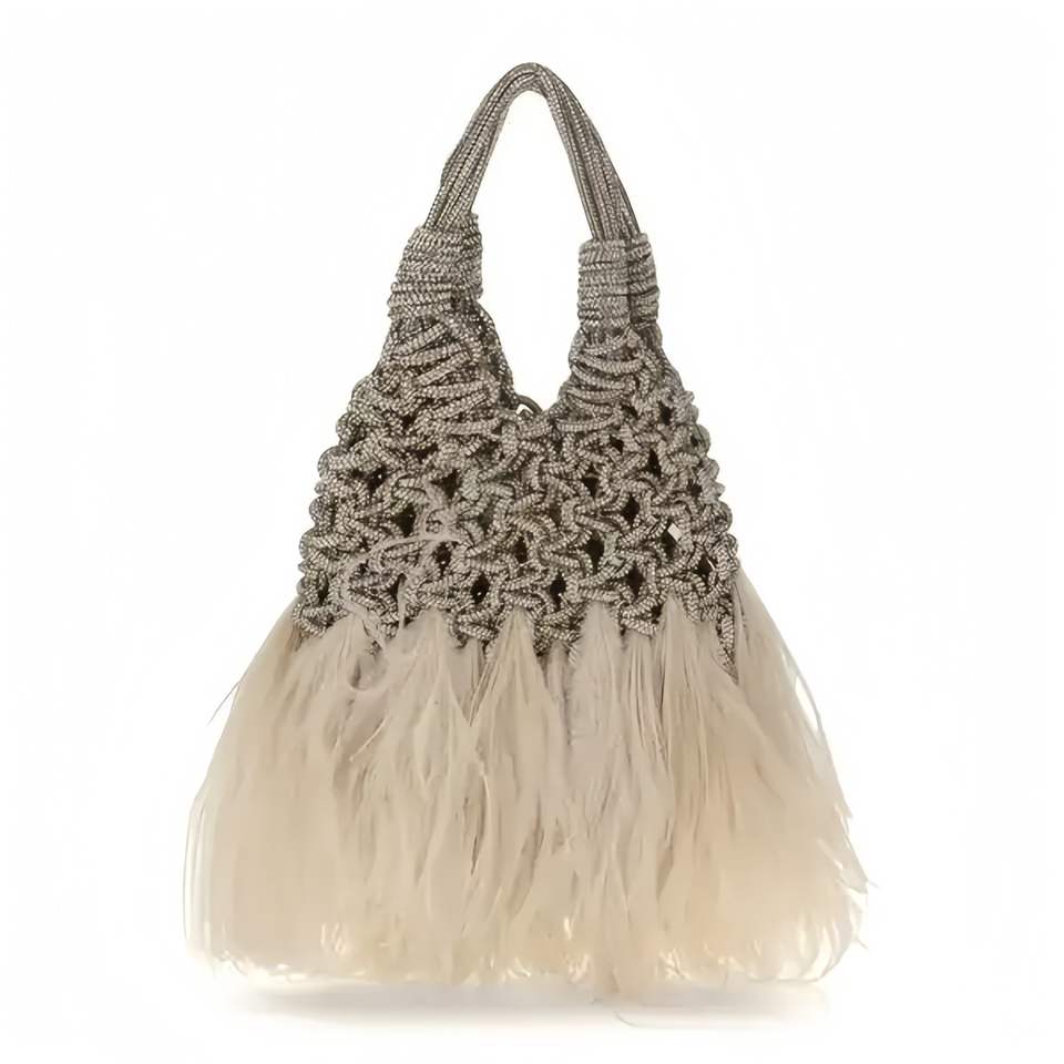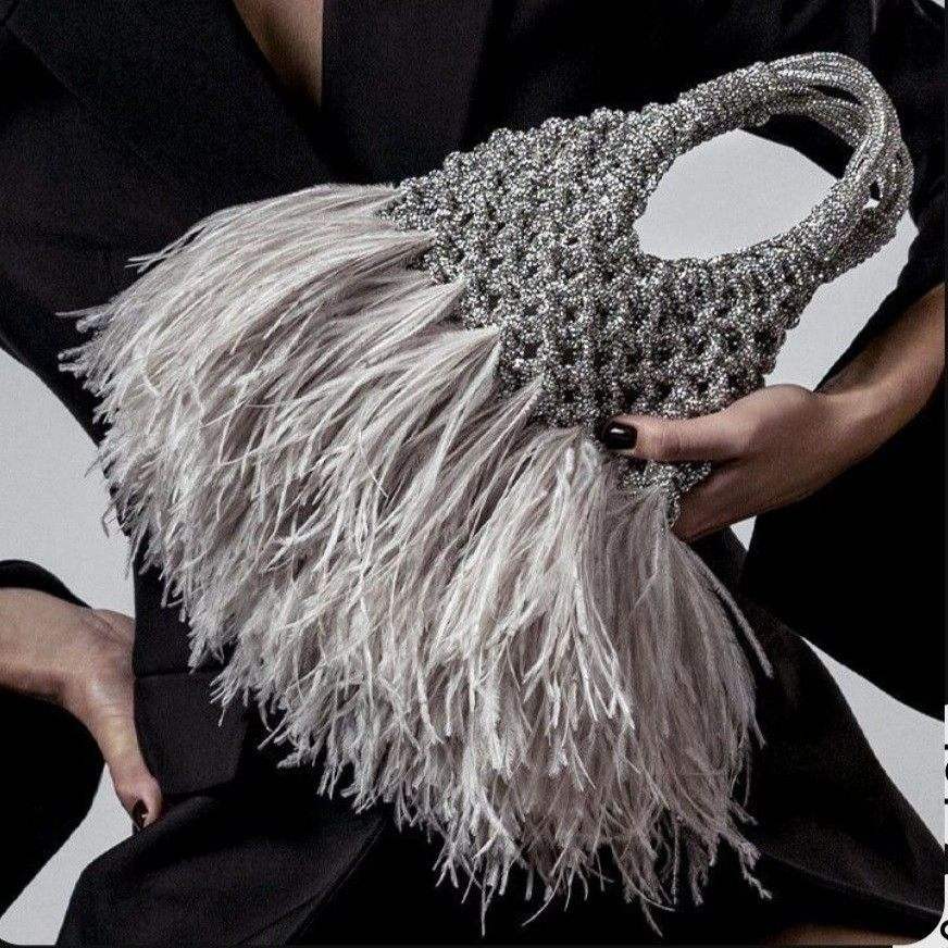 Pochette unisexe haut de gamme en strass et plumes, tissée à la main, avec fermeture ouverte, forme boulette, idéale pour les soirées et les danses