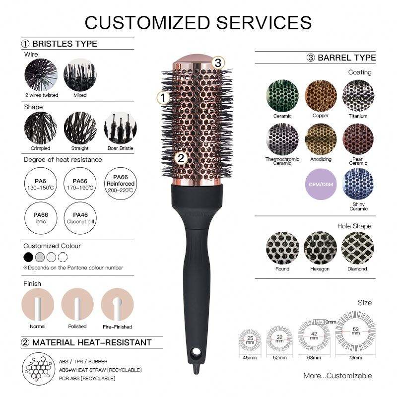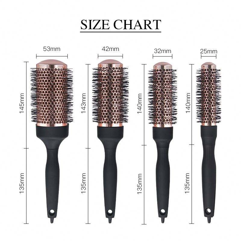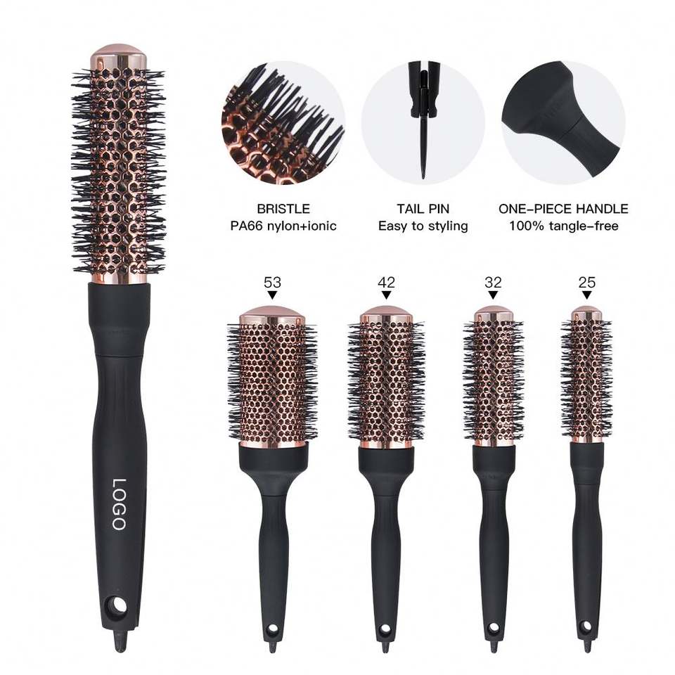 Brosse à cheveux en céramique plaquée or rose haut de gamme avec poils ionisants et manche à queue pour usage professionnel en salon