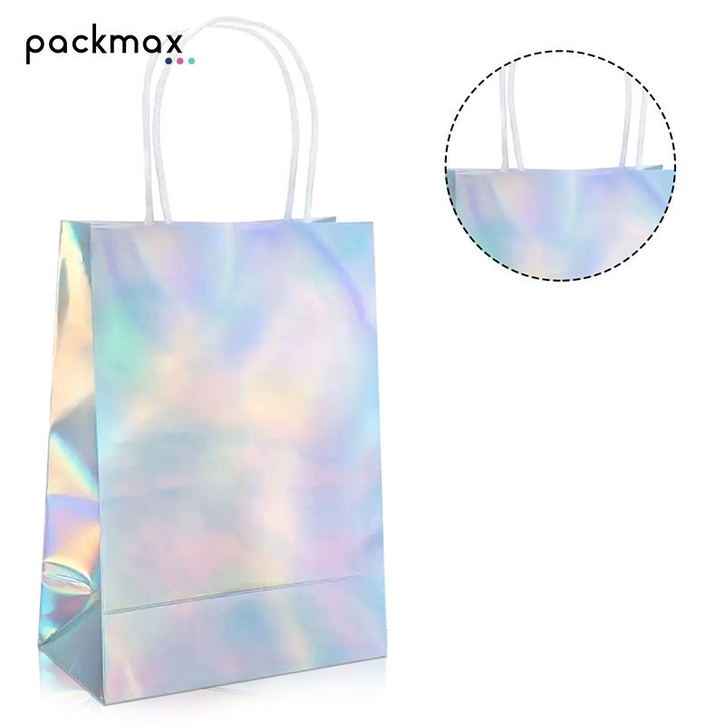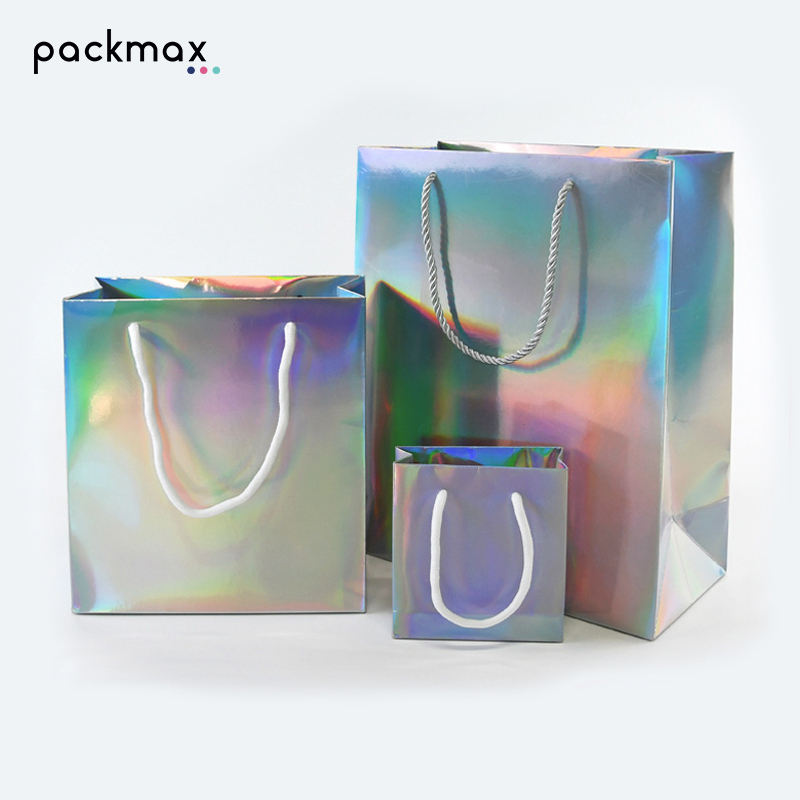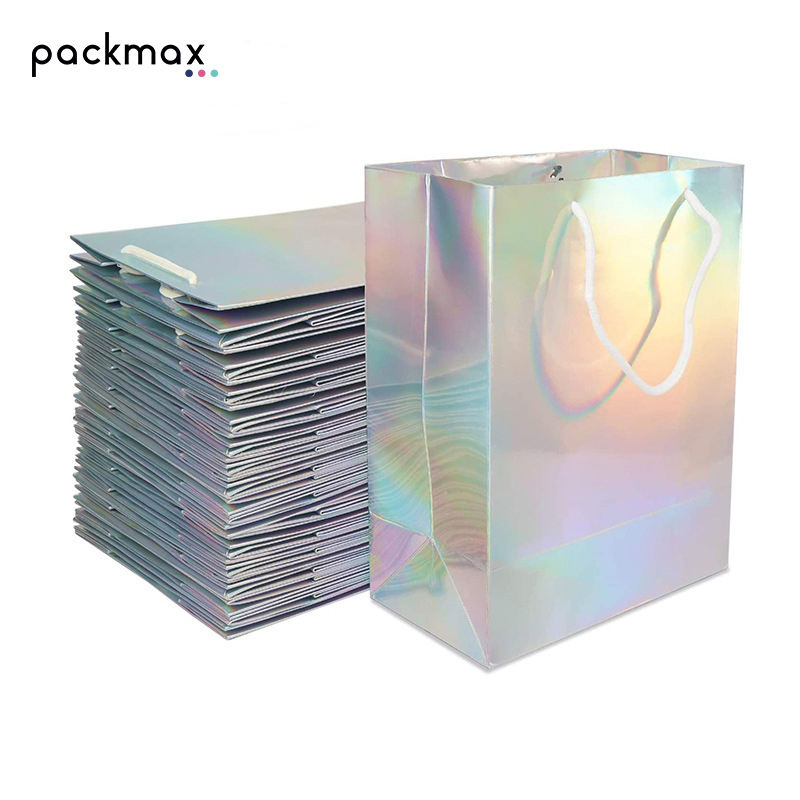 Sacs en papier d'art faits main haut de gamme pour bijoux, cosmétiques, cadeaux, vêtements, emballage de boutique, design laser, ruban, supermarché