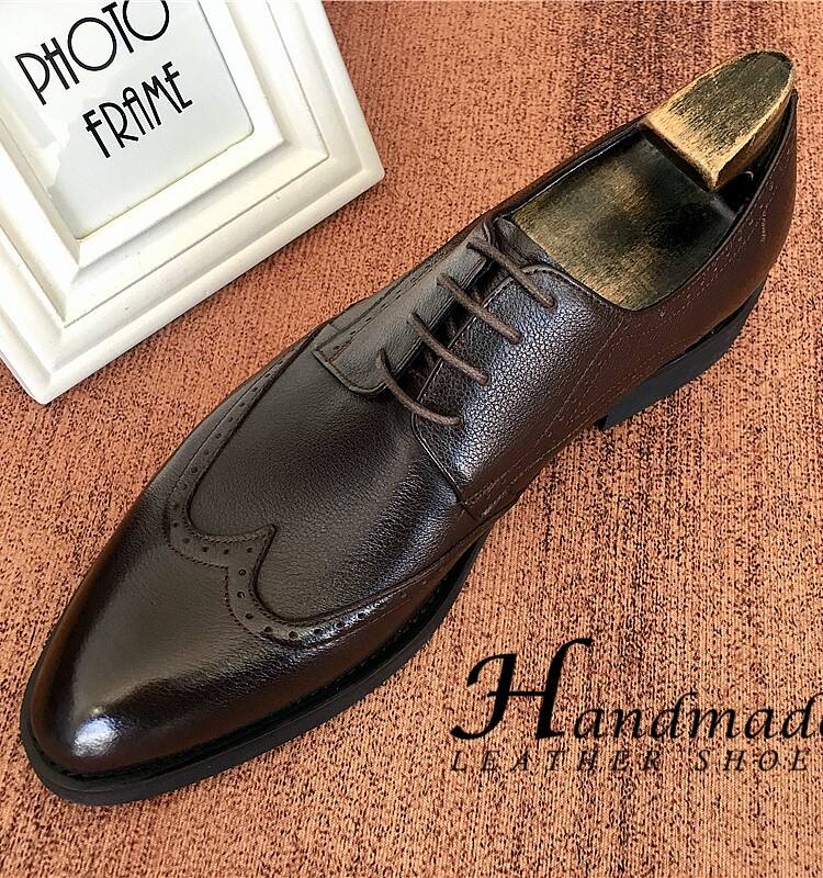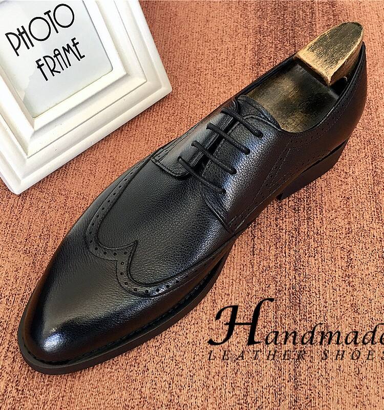 Chaussures Oxford pour hommes en cuir véritable haut de gamme, faites à la main, à bout pointu, style business formel, avec motif brocart sculpté, imperméables