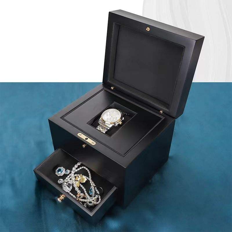 Boîte à montre rectangulaire en bois de luxe haut de gamme, tiroir, fabrication artisanale, écologique, recyclable, emballage cadeau, noir mat