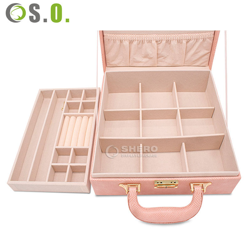 Boîte de rangement pour bijoux en cuir PU portable haut de gamme, grande capacité, pour bracelets, boucles d'oreilles, colliers, organiseur de voyage