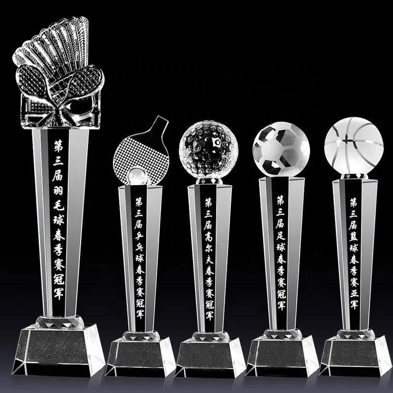 Fabrication de trophées de football haut de gamme, coupes en cristal pour baseball, tennis, golf, course automobile, récompenses pour les champions