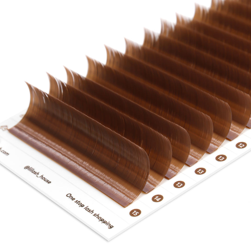 Cils en PBT haut de gamme brun foncé, plateau de cils ultra-légers, volume russe, cils bruns, emballage de cils en gros