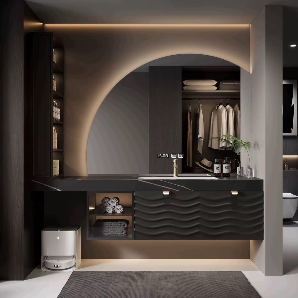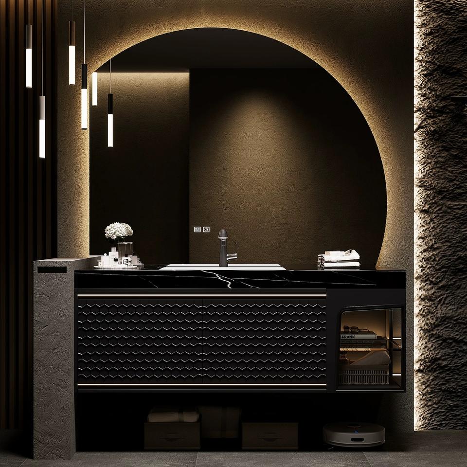 Miroir intelligent haut de gamme avec fonction anti-buée et rétroéclairage, avec rangement de grande capacité et armoire de salle de bain étanche