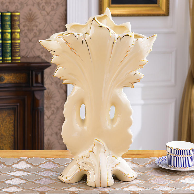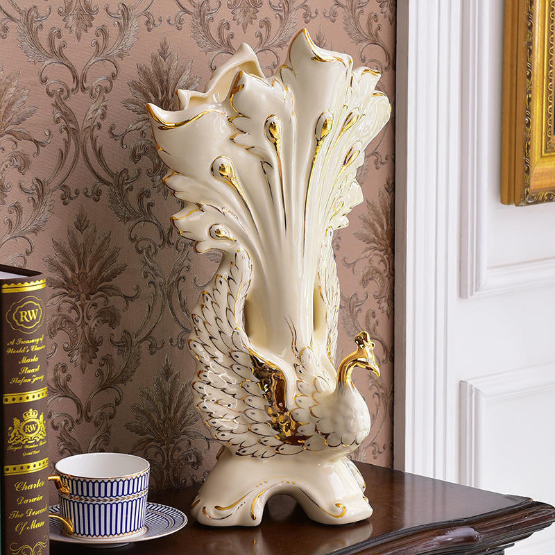 Vase en céramique de style européen de haute qualité ornements plaqué or paon écran fleur insérer créatif maison accessoires salon