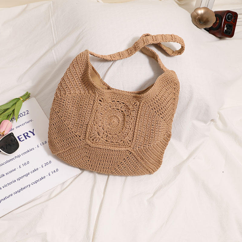 Sac de plage en coton tissé de haute qualité, grande capacité, motif floral ajouré, style vacances, passe-partout, en polyester