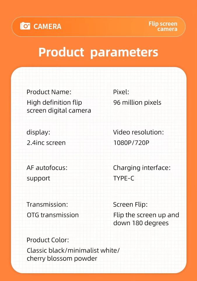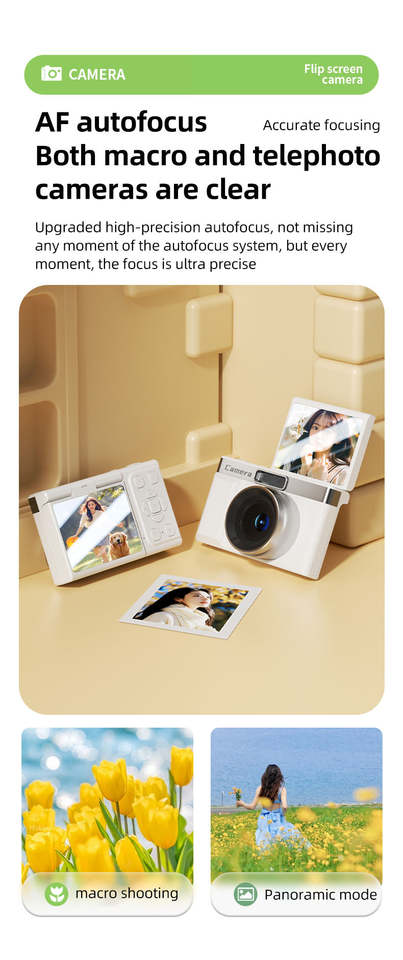 Appareil photo numérique haute résolution FHD 1080P Appareil photo CCD 180 degrés Flip Autofocus Selfie Avant Arrière Photos Vidéos Vlogging Double caméra