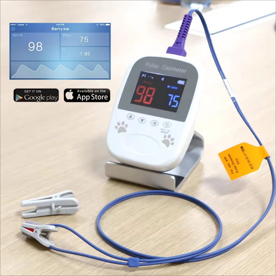 Oxymètre de pouls vétérinaire multifonctionnel 6-en-1 haute précision, moniteur portable connecté à une application pour animaux de compagnie, destiné uniquement à l'usage vétérinaire