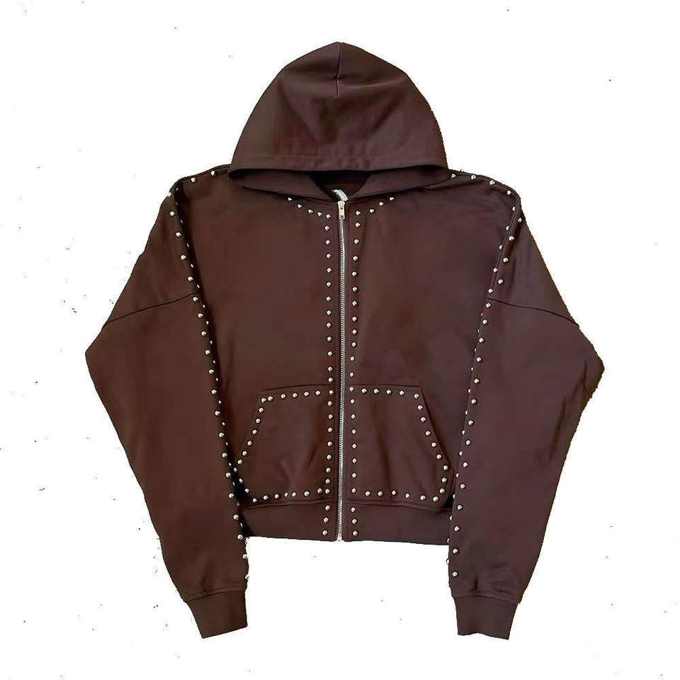 Sweat-shirts à capuche zippés personnalisables en molleton 100 % coton de haute qualité, brodés, imprimés, effet vieilli, pour hommes, avec strass