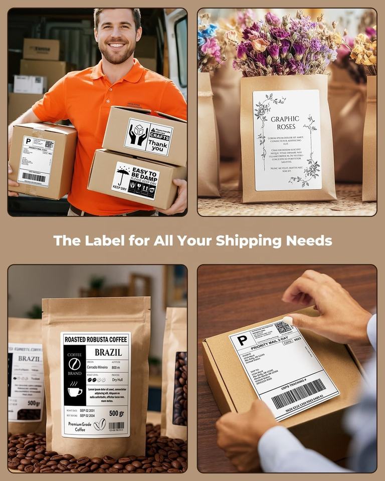 Imprimante d'étiquettes d'expédition pliable de haute qualité 4 x 6 pouces avec perforations et adhésif puissant, pour l'emballage et la logistique.