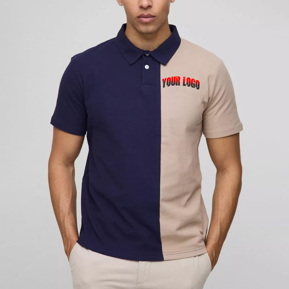 T-shirt d'été décontracté à manches courtes 100 % coton, bicolore, respirant, écologique, séchage rapide, avec logo personnalisé de haute qualité et impression à 2 boutons