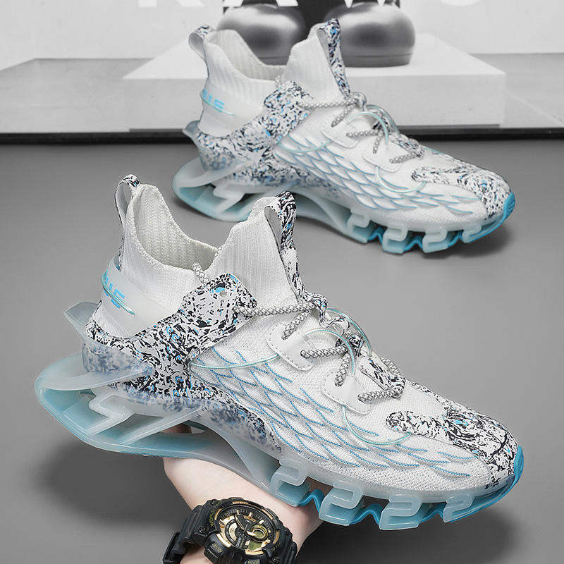 Chaussures de marche pour hommes sur mesure de haute qualité, respirantes, légères, en maille, confortables, antidérapantes, design tendance à bords coupés