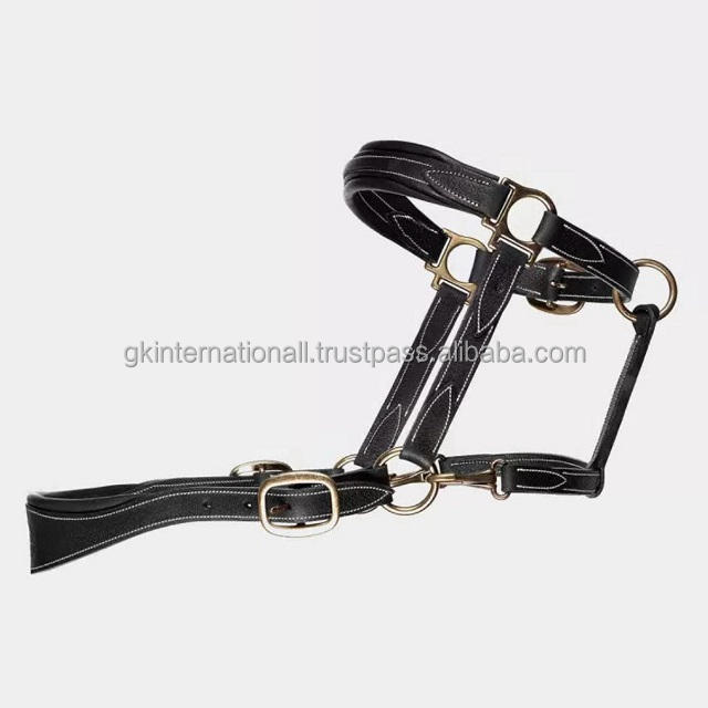Licou de cheval en cuir rembourré robuste sur mesure de haute qualité avec coutures fantaisie et matériel en laiton réglable solide