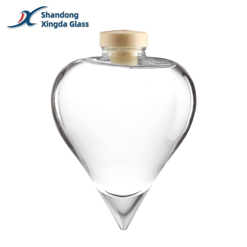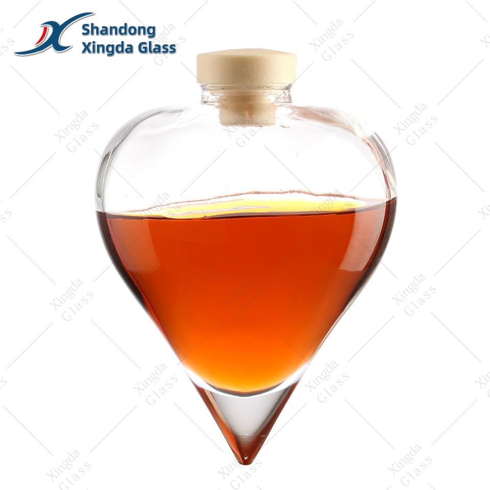 Bouteille en verre personnalisée de haute qualité 500 ml pour spiritueux, vodka, whisky, rhum, liqueur, avec bouchon en liège, tequila, gin super flint, bouteille en forme de cœur