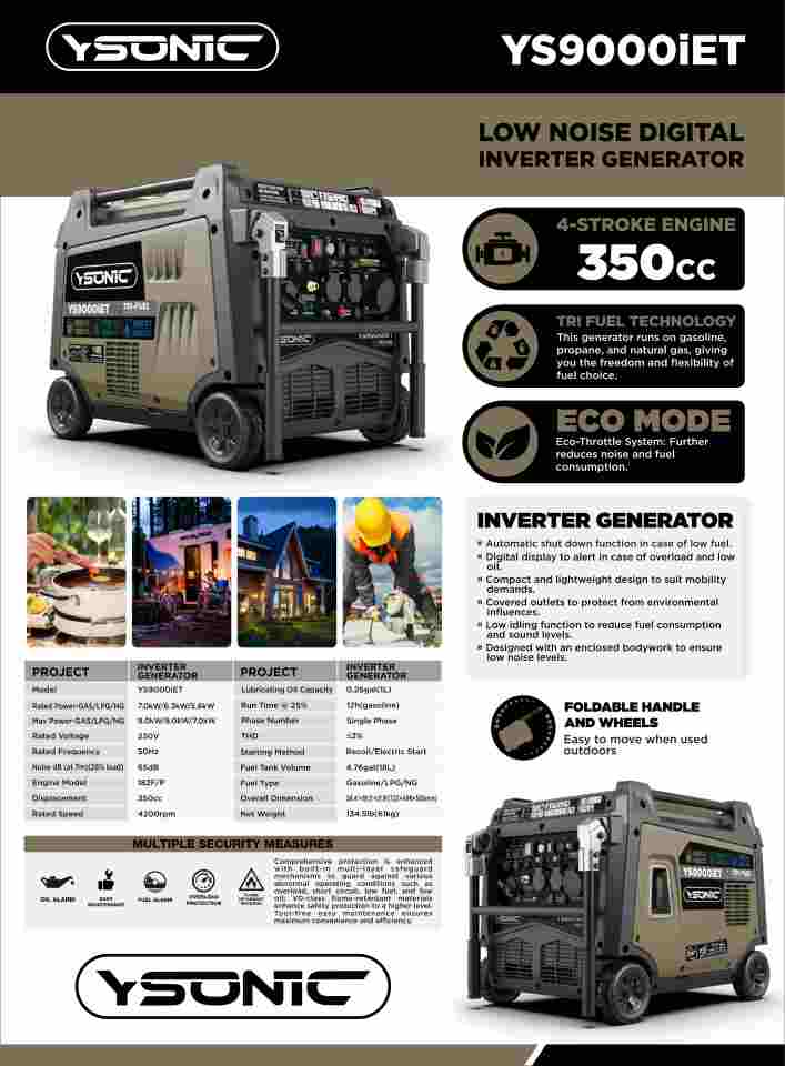 Générateur silencieux à essence LYS9000IET de haute qualité 9KW pour usage domestique avec démarrage automatique, moteur OHV 4 temps 350cc