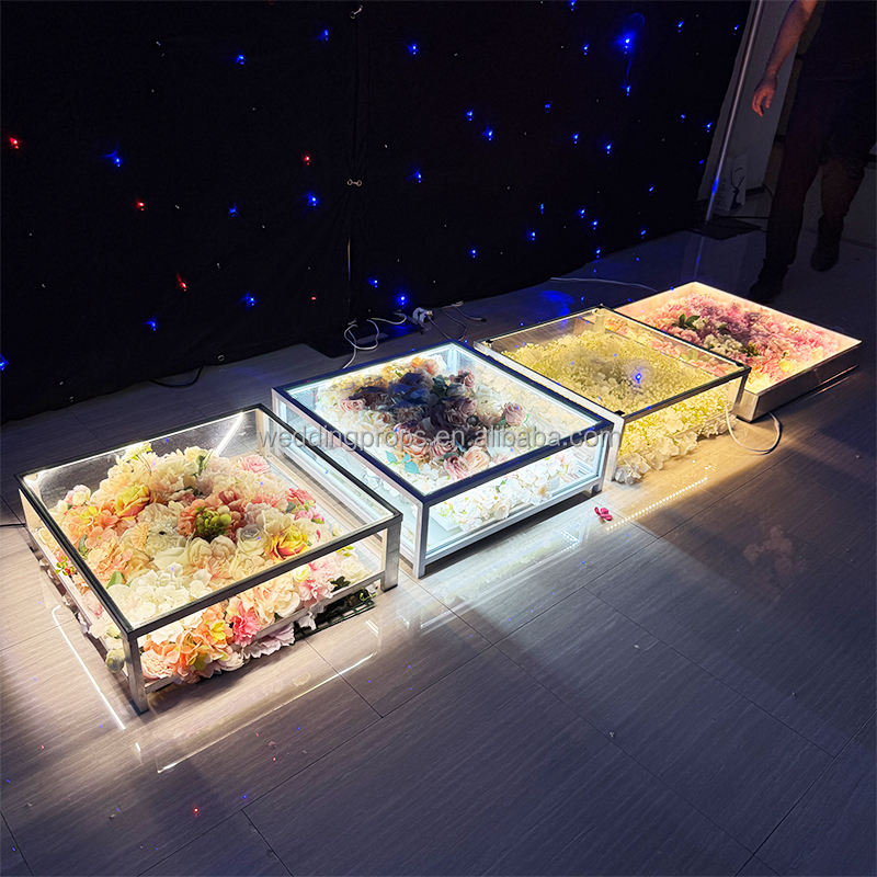 Discothèque de haute qualité scène de fête de mariage belle scène en verre plate-forme carrée accessoires de scène en verre