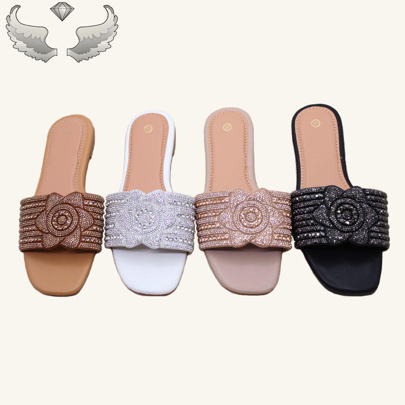 Sandales et pantoufles plates pour femmes, de haute qualité, tendance, été, nouveau design, décontractées, avec strass, pour l'extérieur