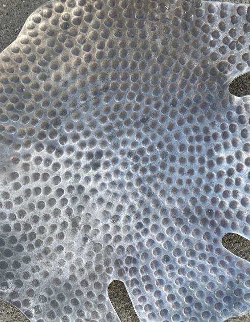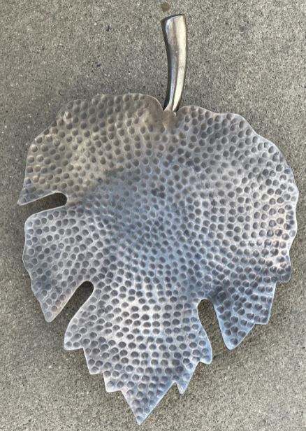 Plateau de service en métal gris de haute qualité avec motif feuille, idéal pour une présentation élégante sur table, pour les hôtels et pour une présentation raffinée des aliments.