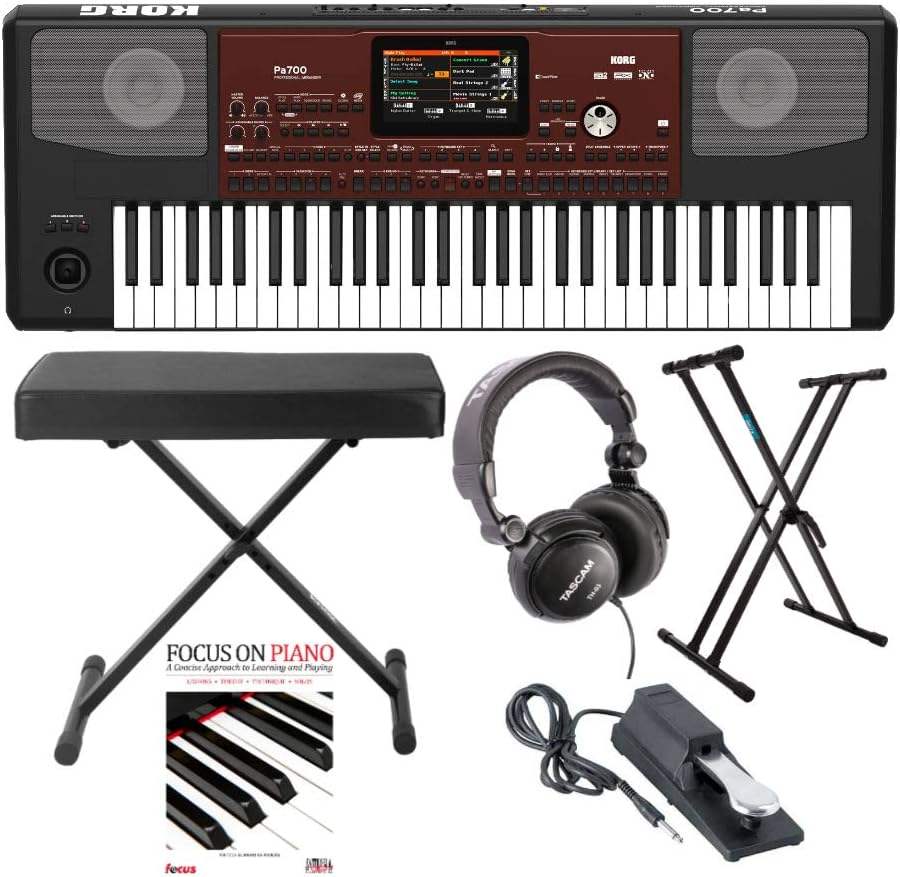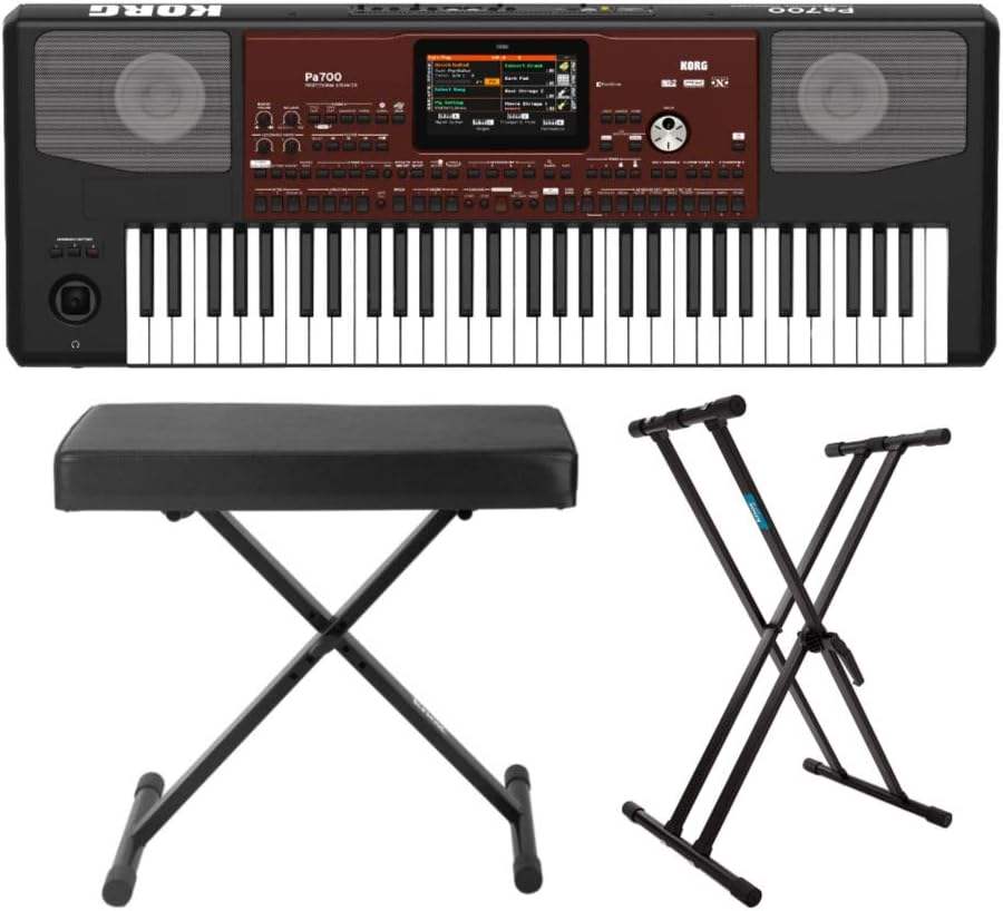 Clavier arrangeur Korg PA700 61 touches de haute qualité avec banc, double support en X et pack d'accessoires