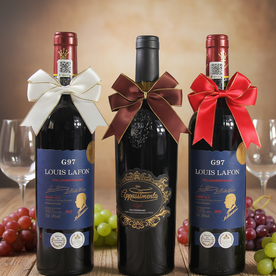 Ruban de vin rouge luxueux de haute qualité avec bande élastique pour la décoration de bouteilles de vin pour anniversaire, mariage, etc.