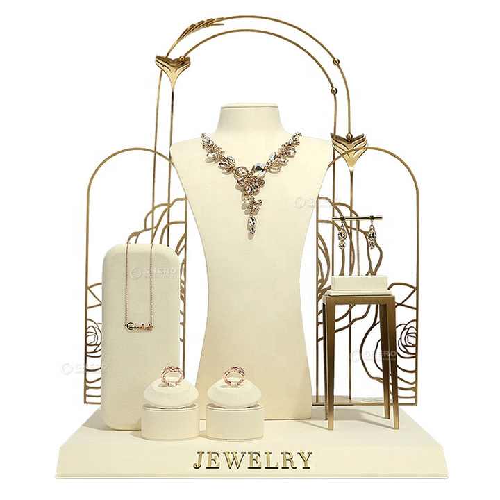 Présentoir à bijoux en métal de haute qualité, usine de présentoirs de luxe en velours et résine, présentoirs à bijoux personnalisés avec logo autocollant en métal