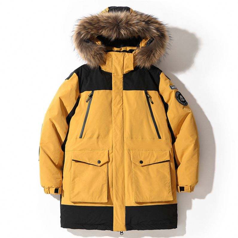 Veste d'hiver en duvet de haute qualité pour homme, mi-longue, avec grand col en fourrure, veste d'hiver chaude et élégante pour homme, résistante au froid