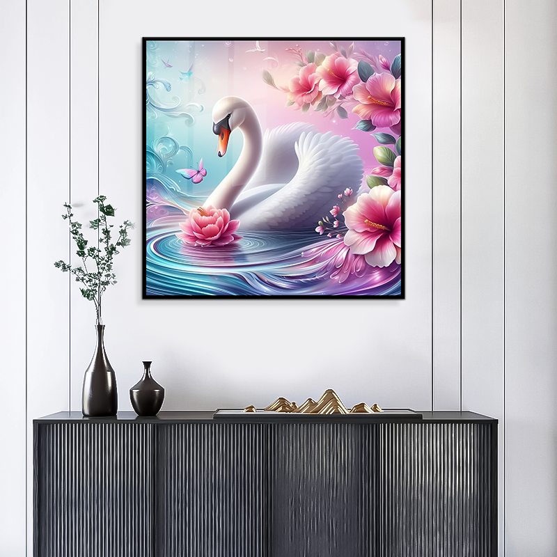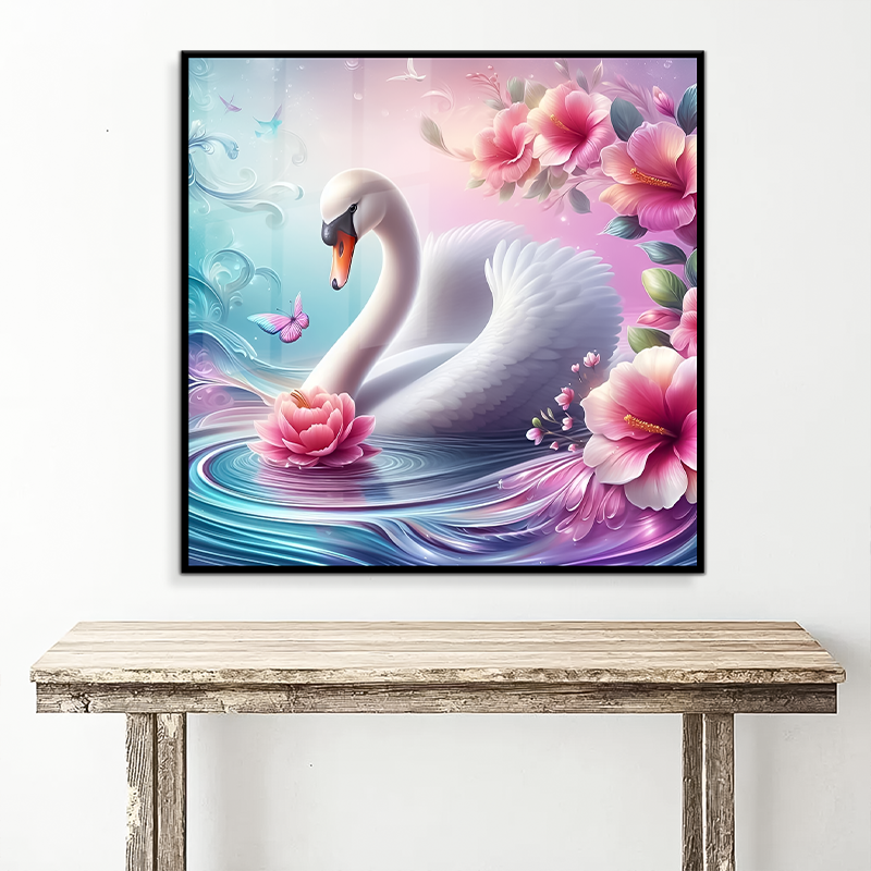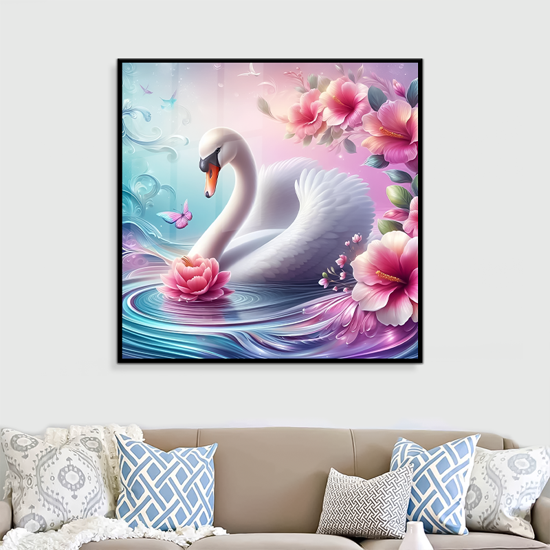 Peinture murale en toile de cristal lisse et brillante de haute qualité, motif de canard blanc, décoration murale pour la maison