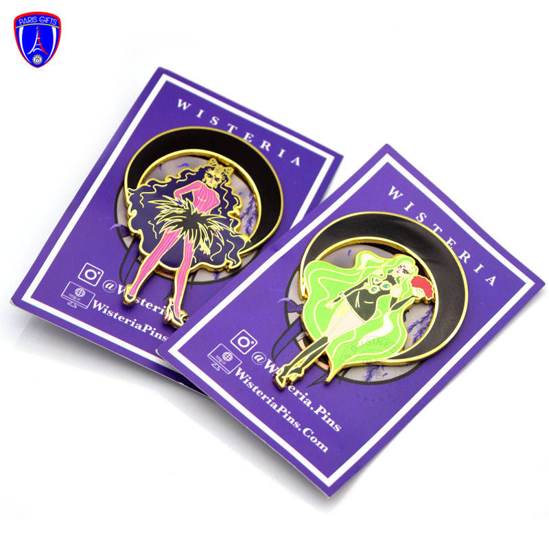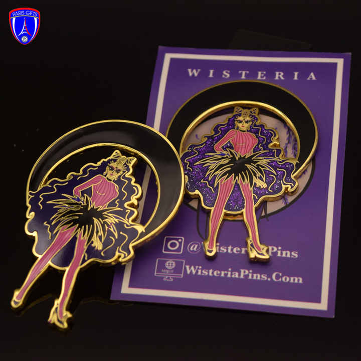 High-quality Original Trendy Brand Enamel Badge with cat Ears Feather Skirt and Black Crescent Design Along with Backing Card